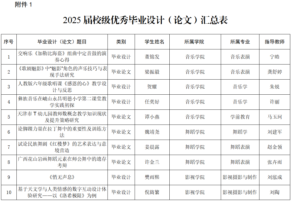 附件:1.2025届校级优秀毕业设计(论文)汇总表