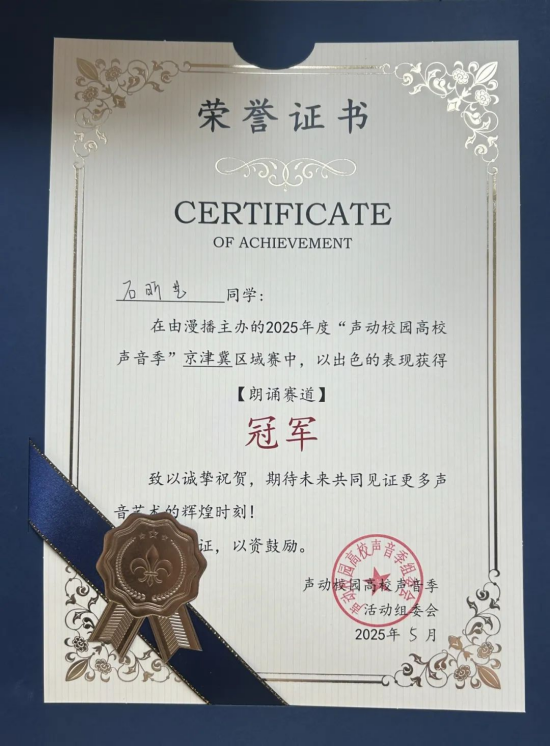 喜报|恭贺我院学子石昕艺在“声动校园·高校声音季”京津冀赛区朗诵比赛中荣获佳绩