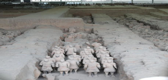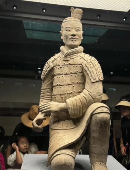 从上方俯瞰兵马俑,千军万马的恢弘气势扑面而来,肃穆之感油然而生。而当聚焦于单个兵马俑时,又会惊觉每个士兵都有着独一无二的个体特征。“秦俑虽无名,千人千面,他们以血肉之躯安天下,护万里河山。”正如《国家宝藏》中所描述的那般,这些兵马俑虽没有具体的名字,却以其庄严肃穆的姿态诉说着往昔的辉煌。