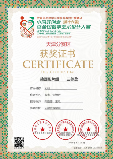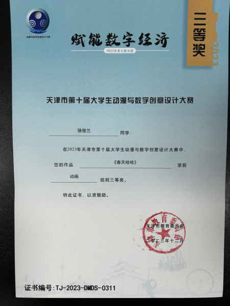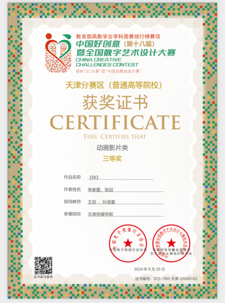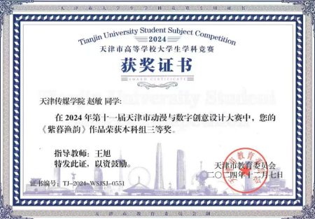 2024年 获第12届未来设计师.全国高校数字艺术设计大赛全国总决赛 三等奖