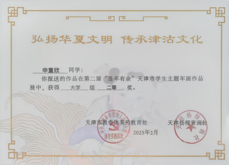2025年 获第二届”莲年有余“天津市学生主题年画作品展 二等奖
