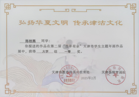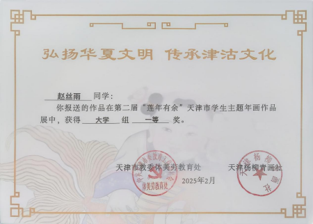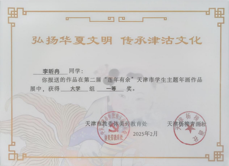 2025年 获第二届”莲年有余“天津市学生主题年画作品展 一等奖