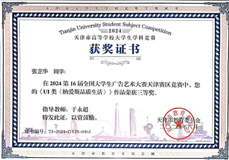 2024年 获第16全国大学生广告艺术大赛天津赛区 三等奖