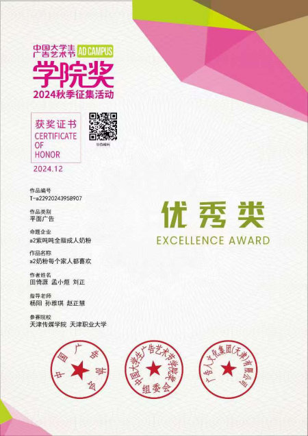 2024年 获中国大学生广告艺术节“学院奖“ 优秀奖