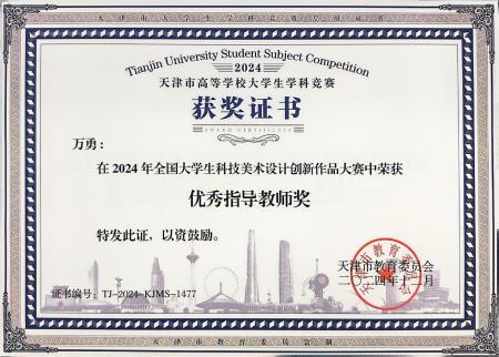 2024年 获天津市高等学校大学生学科竞赛 优秀指导教师奖