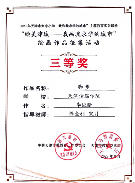 2023年 获”绘美津城-我画我求学的城市“绘画作品征集活动 三等奖