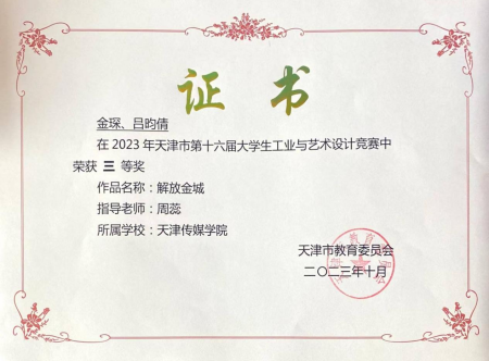 2023年 获天津市第十六届大学生工业与艺术设计竞赛 三等奖