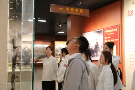 同学们放慢脚步,屏息凝视这些凝固的历史。展厅里静谧无声,唯有炽热的敬意在年轻的胸膛中翻涌,革命先辈的精神火种,正悄然在凝望与思索间,点燃新一代的信仰之光。