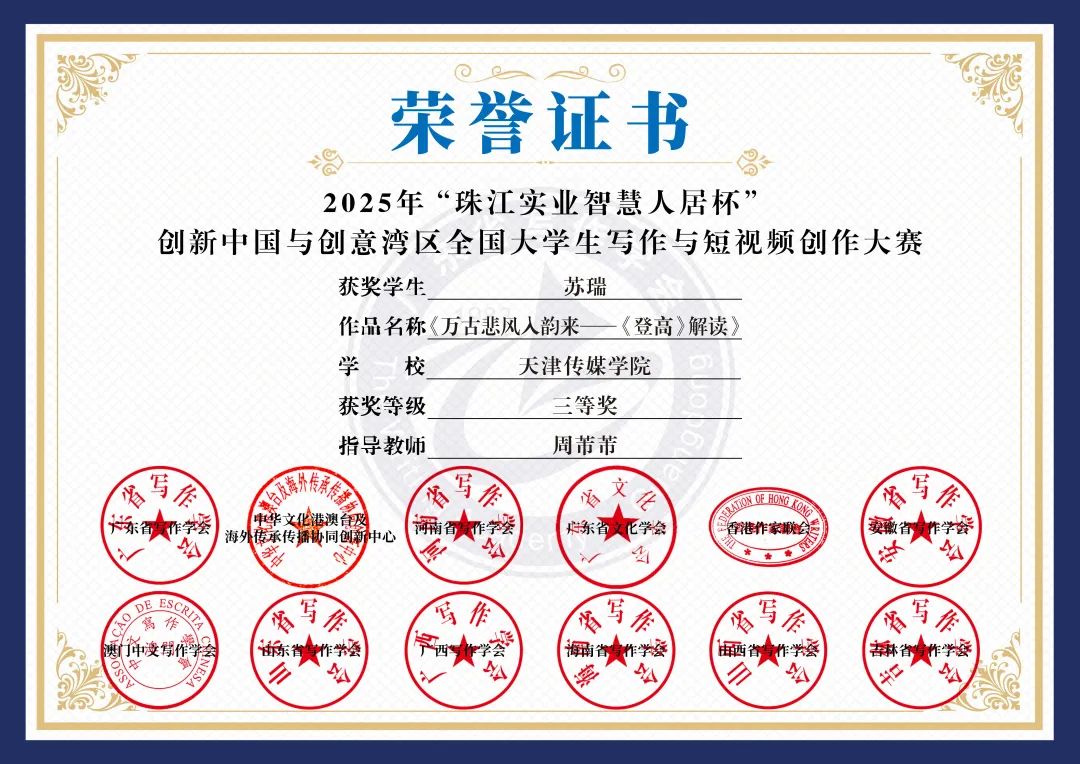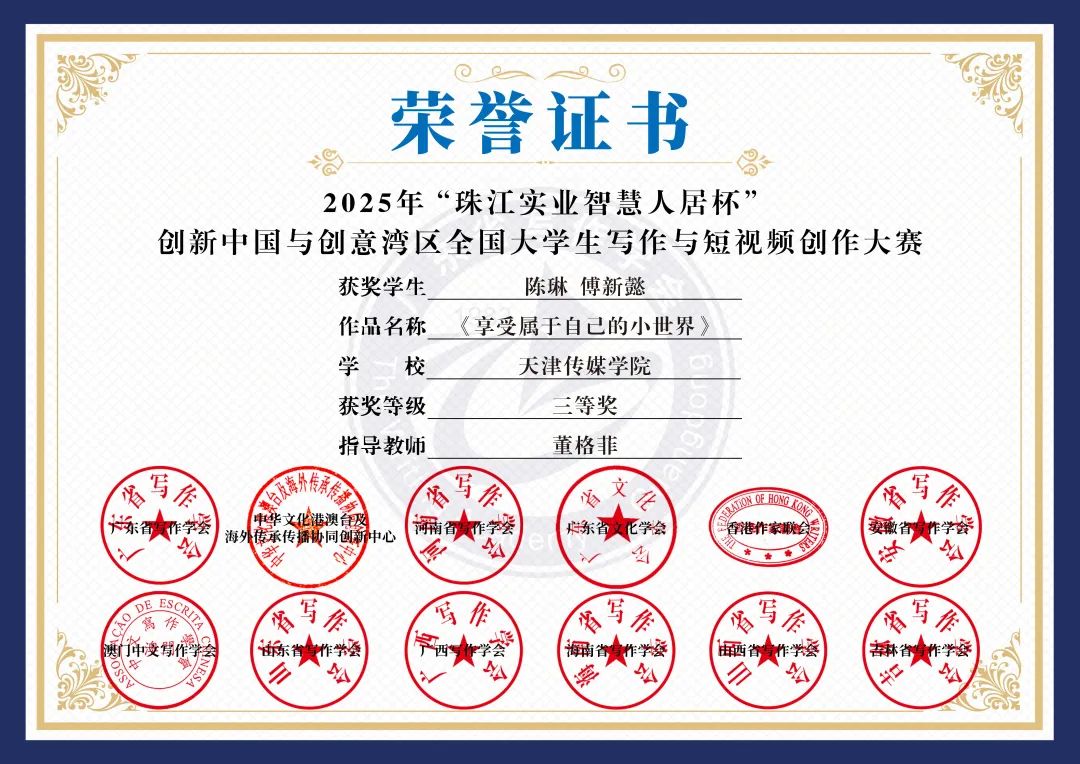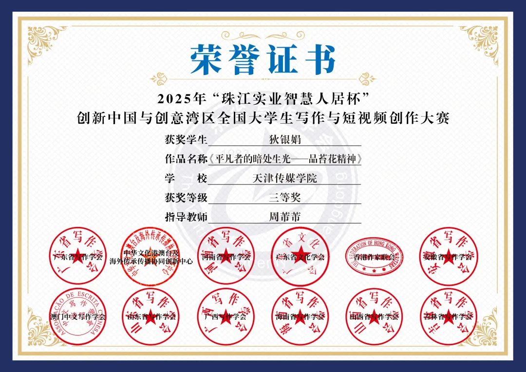 经过激烈角逐,我校汉语言文学专业学子凭借出色表现脱颖而出:文学类赛道斩获一等奖 5 项、二等奖 8 项,以文字书写青春华章,笔锋间尽展风华灼灼;视频类赛道收获三等奖 11 项,创意在镜头间流淌,青春于画帧中绽放。