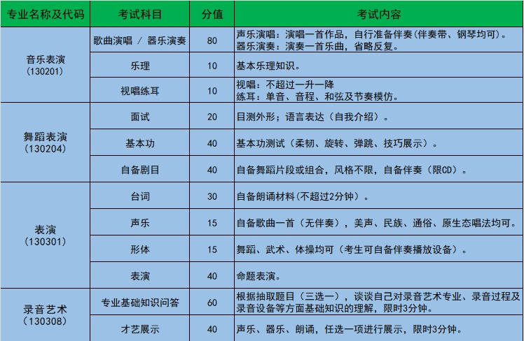 艺术类考生需参加我院组织的专业加试,具体时间请及时关注我院官网、个人登记的邮箱和短信通知。专业加试科目内容如下: