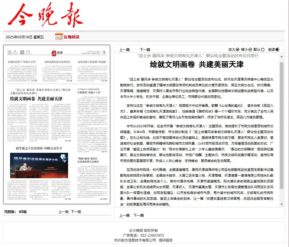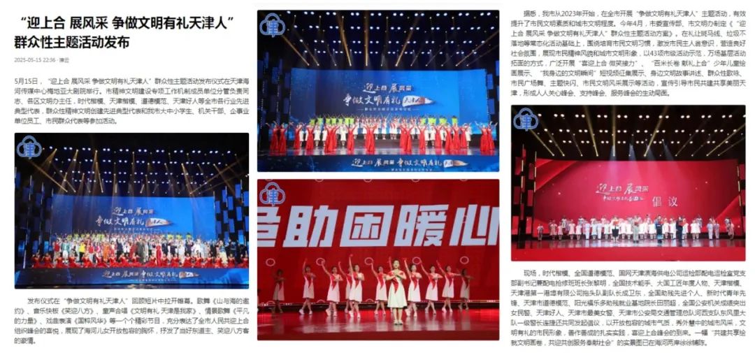 本次活动也吸引了众多媒体的目光,天津日报、今晚报、津云等多家媒体对活动进行了深入报道。他们用文字、镜头记录下活动的精彩瞬间,将我校学生的精彩表现与活动传递的文明精神广泛传播,让更多人了解到这场盛会,感受到天津在文明建设道路上的坚定步伐与青春活力。