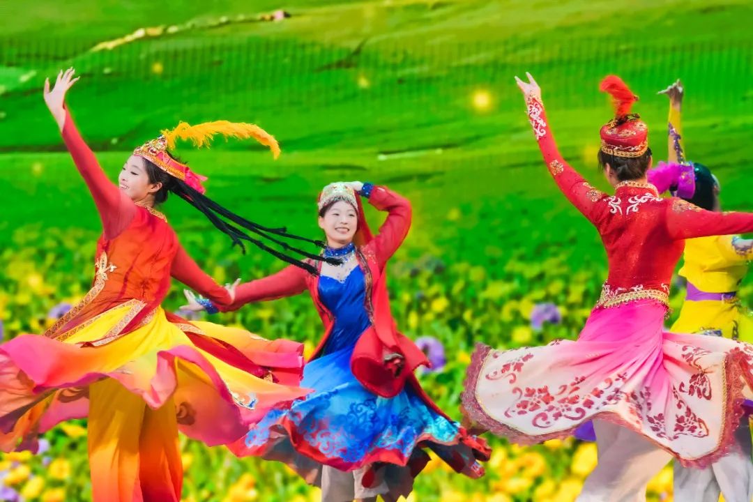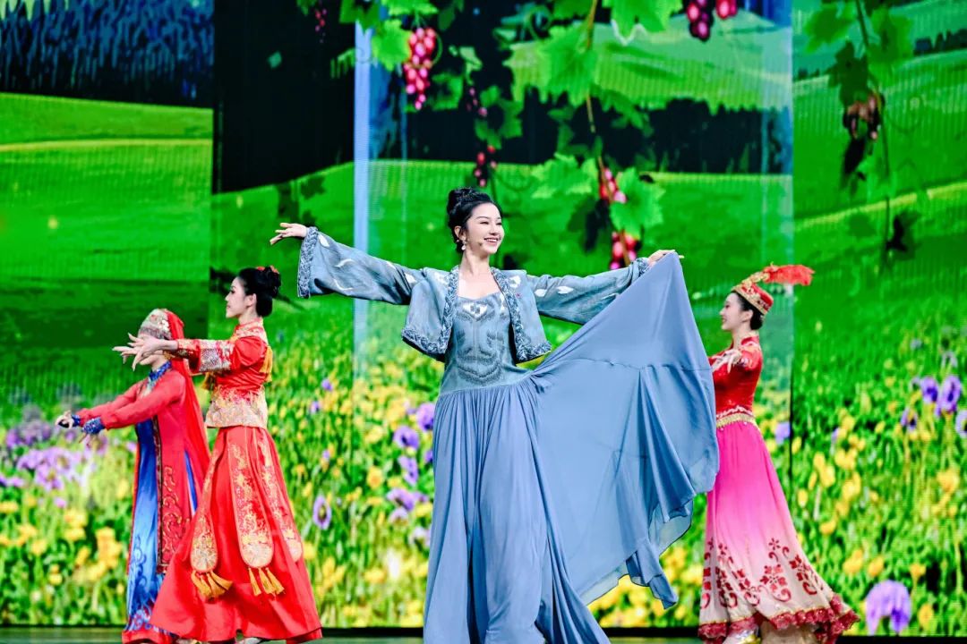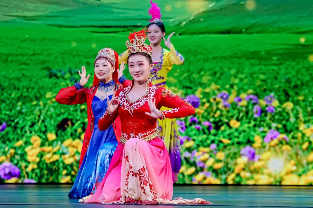 舞蹈学院青年教师古丽迪娅尔·阿纳依提并携电影主创与我校学生共同表演歌舞《新疆山水美》