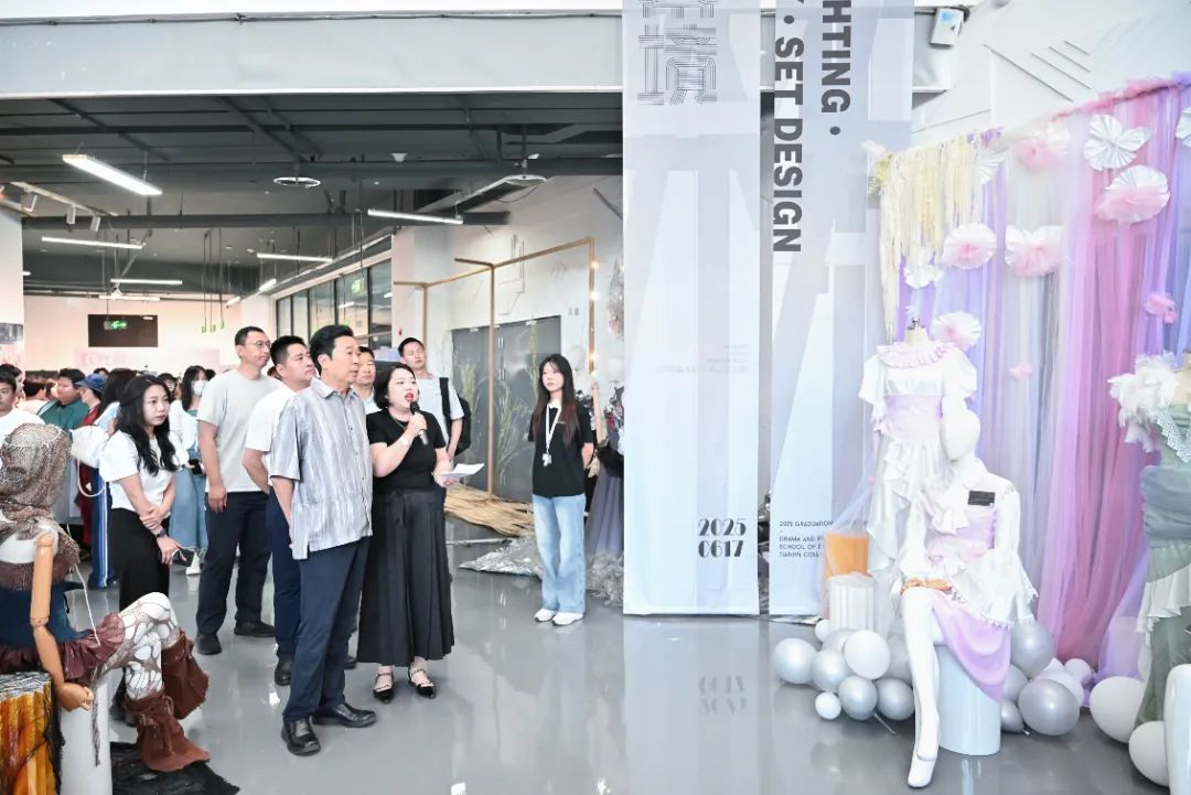 6月17日上午,天津传媒学院2025届戏剧影视美术设计专业毕业作品展在科文楼星空顶展厅隆重开幕。本次展览以“衣·光·幕·境”为主题,通过服装设计、舞台设计、场景设计和灯光设计四大展区,呈现了一场融合传统与创新的视觉盛宴,全面展现了戏剧影视美术设计专业的教学成果与学生的艺术创造力。