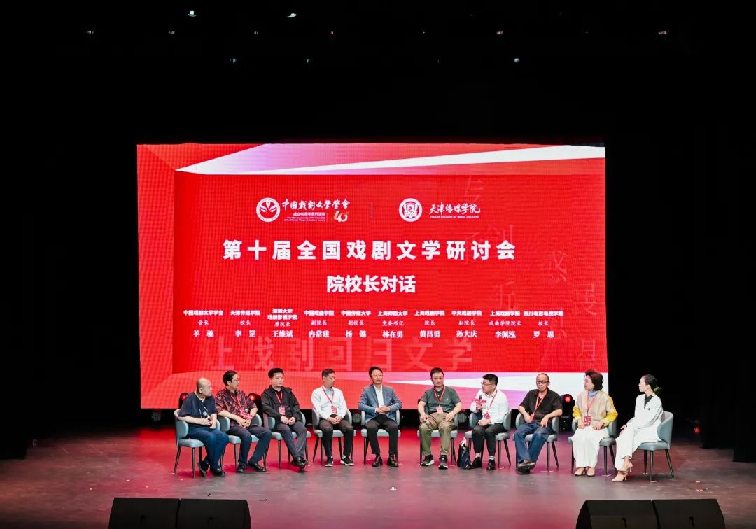 在院校长对话环节,中国戏剧文学学会会长羊驰担任主持人,与上海师范大学党委书记林在勇,上海戏剧学院党委副书记、院长黄昌勇,中国传媒大学党委常委、副校长杨懿,中央戏剧学院党委常委、副院长孙大庆,中国戏曲学院党委常委、副院长冉常建,上海戏剧学院戏曲学院院长李佩泓,深圳大学戏剧影视学院原院长王维斌,四川电影电视学院党委副书记、校长罗思,天津传媒学院校长李罡等院校领导展开了深入交流。大家围绕戏剧文学教育的现状与未来、人才培养模式创新等话题进行了热烈讨论,对戏剧文学教育的发展提出了许多建设性的意见和建议。