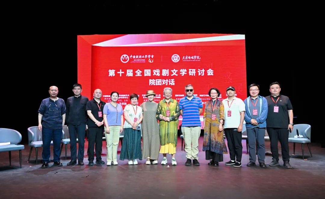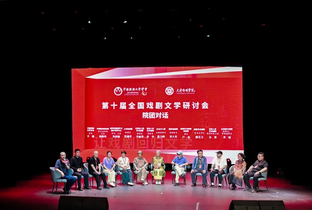 院团对话环节,中国戏剧文学学会会长羊驰与国家话剧院原副院长罗大军,全总文工团总团原团长娄乃鸣,四川人民艺术剧院原院长李亭,天津市儿童艺术剧团副团长齐丽华,新疆艺术剧院话剧团团长卢忠,上海淮剧团副团长管燕草,成都艺术剧院党总支书记廖艺力,嵊州市越剧艺术保护传承中心(嵊州越剧院)书记、主任朱杭灿,中国歌剧舞剧院剧目创作部主任赵海风,北京人民艺术剧院原创作室主任吴彤,江苏梆子剧院副书记、常务副院长李绽等院团领导进行了对话。大家就戏剧文学创作与院团需求、艺术创新与市场适应之间的平衡,产学研融合发展等问题进行了深入探讨,为推动戏剧文学的产业化发展提供了有益的参考。