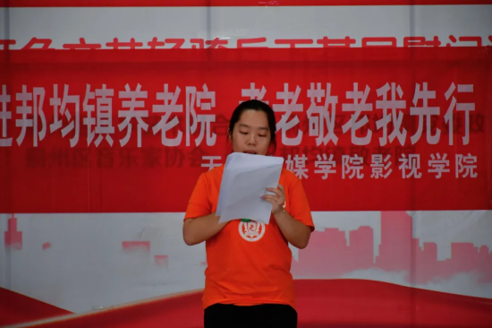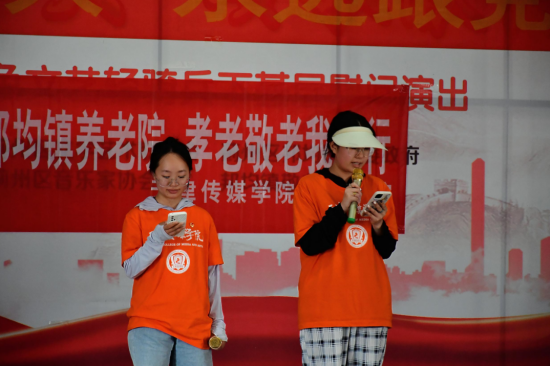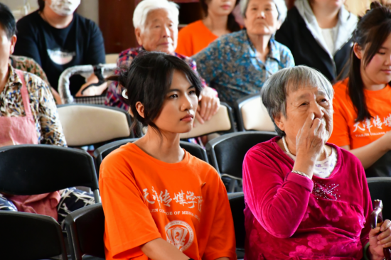 活动现场,热闹非凡。舞蹈环节中,学生灵动的舞姿,引得老人边看边鼓掌,个个乐开了怀。清脆的歌声、精彩的舞蹈更令老人们为之欢呼。同学们运用娴熟的技巧,表演了老人们喜欢的文艺节目,引人入胜。