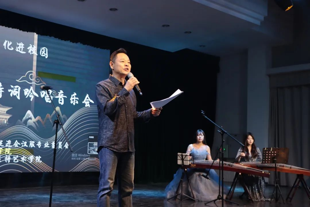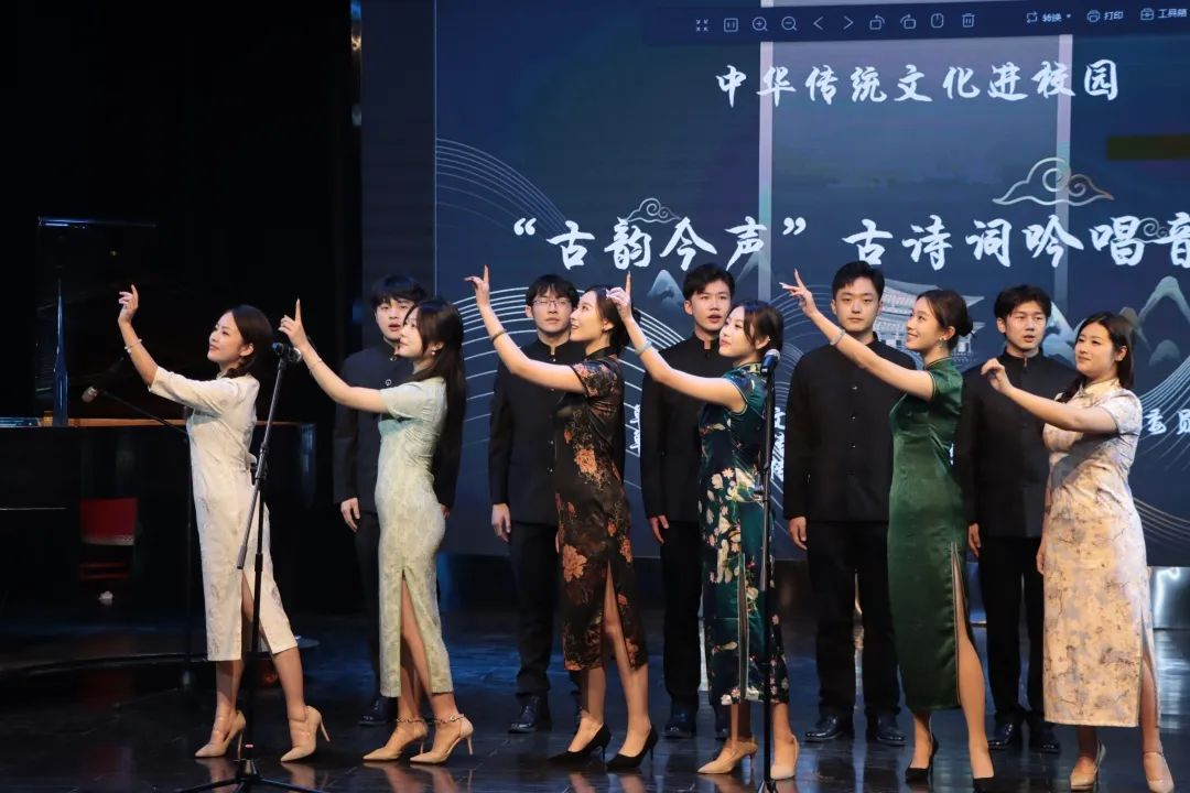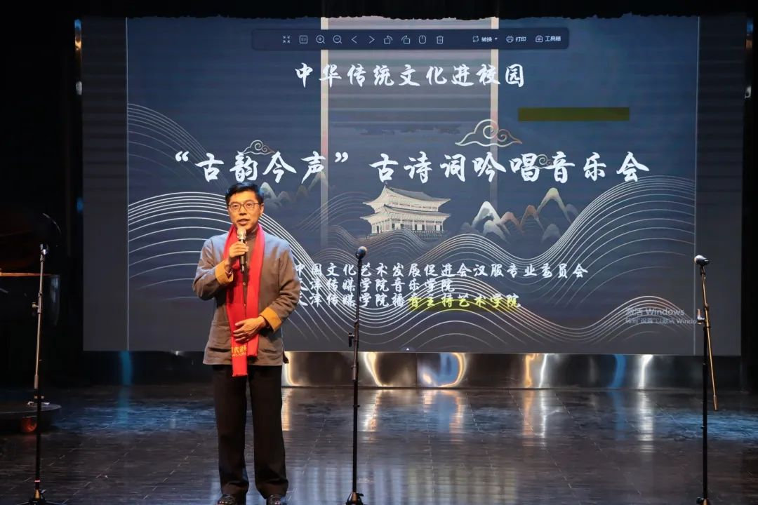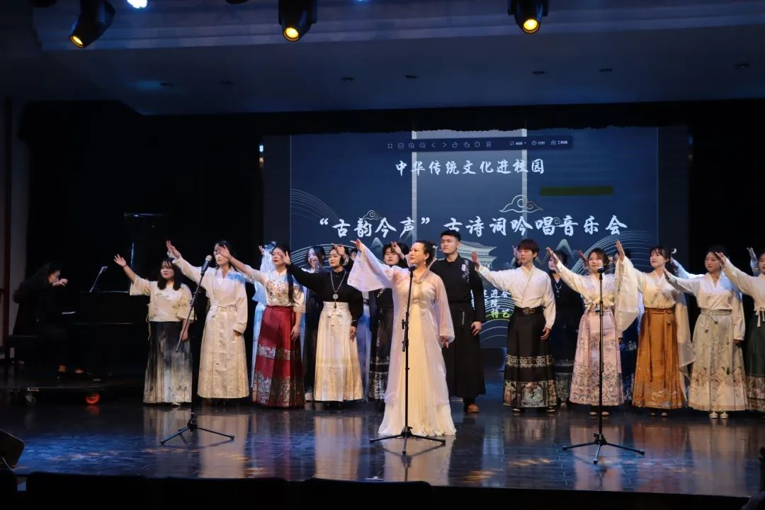 学期末,我院在音乐楼小剧场举办了“古韵今声”古诗词吟唱音乐会。此次“传统文化进校园”活动,由中国文化艺术发展促进会汉服专业委员会主办,天津传媒学院音乐学院、播音主持艺术学院承办。