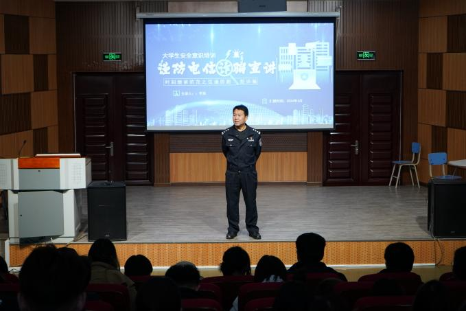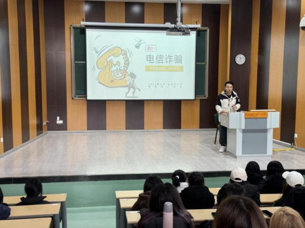 2025年3月25日,由保卫处会同学生处在图书馆报告厅开展“开学反诈第一课”宣传教育活动,邀请属地公安派出所民警进行专题讲座,结合高校学生易发网络刷单、虚假购物、校园贷等典型案例,剖析诈骗套路,讲解“三不一多”(未知链接不点击、陌生来电不轻信、个人信息不透露、转账汇款多核实)的防范诈骗要点,让学生充分认识电信网路诈骗的危害,进一步增强防骗能力。此次活动利用校园广播播放反诈顺口溜、在宿舍、教学楼电子屏滚动反诈宣传标语、结合天传校警四级联动大数据预警群等形式,全维度形成反诈宣传氛围。多数学生表示,一定要高度警惕电信网络诈骗的多样性,不信、不链、慎转账,提高防范电信网络诈骗的能力。