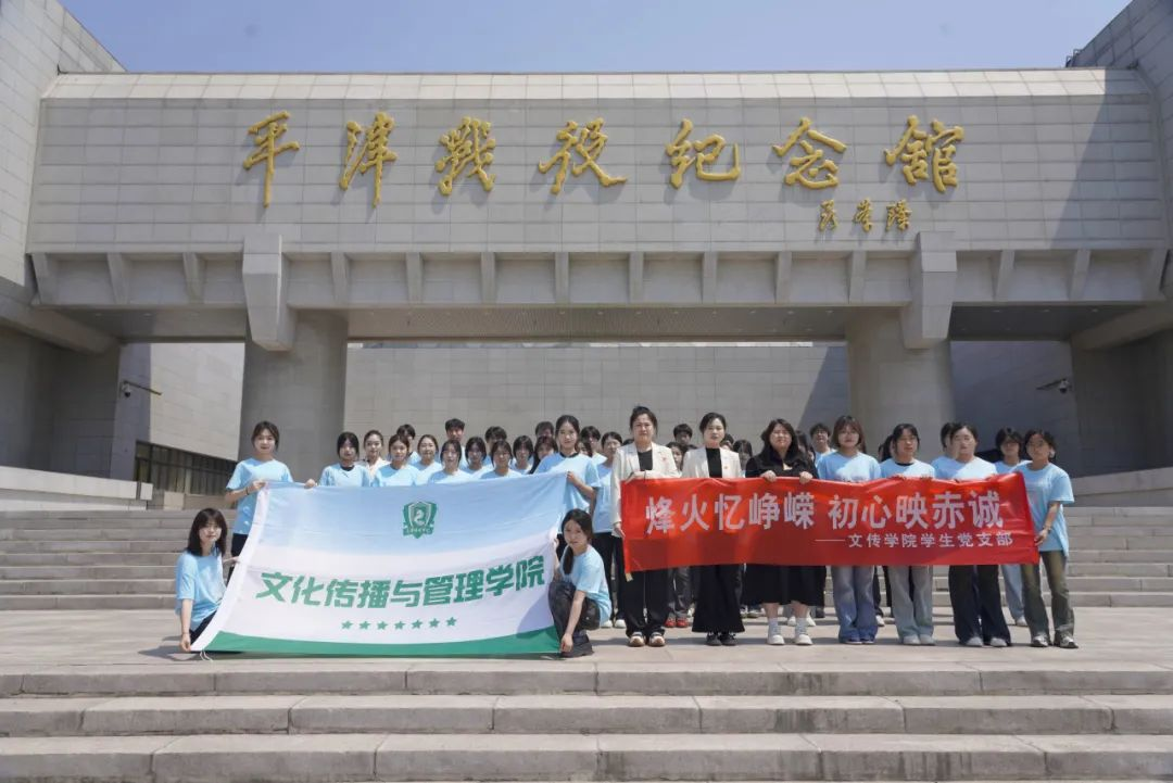 天地英雄气,千秋尚凛然。为弘扬革命精神,厚植爱国情怀,教育引导广大新时代青年铭记历史,感受峥嵘岁月;传承遗志,护佑盛世中华。5月28日,文化传播与管理学院党总支副书记齐骏斌带领文化传播与管理学院学生党支部的师生走进平津战役纪念馆,开展“烽火忆峥嵘,初心映赤诚”主题党日活动,传承先辈精神,让红色基因在青年学子心中生根发芽。