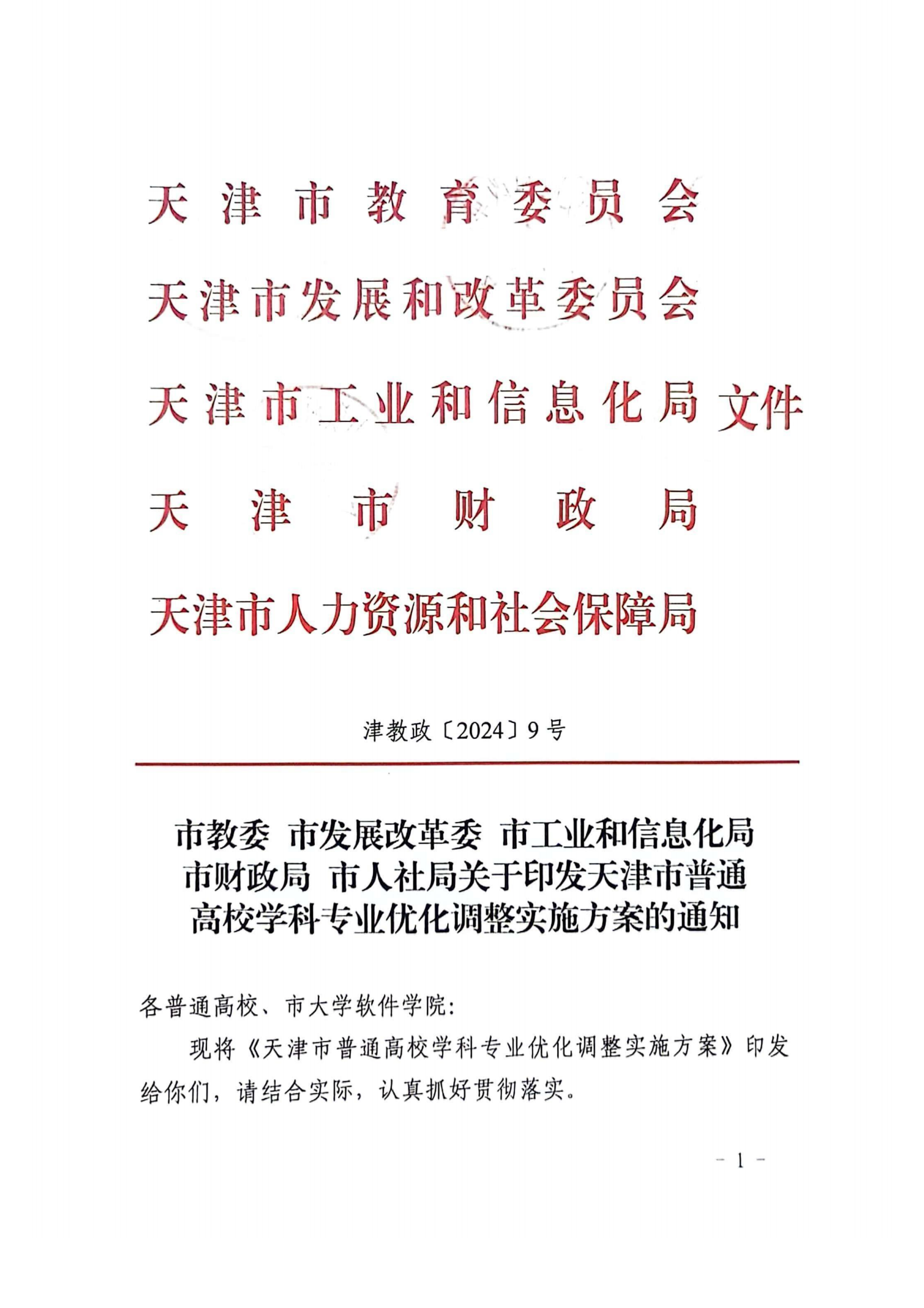 市教委等五部门关于印发天津市普通高校学科专业优化调整实施方案的通知
