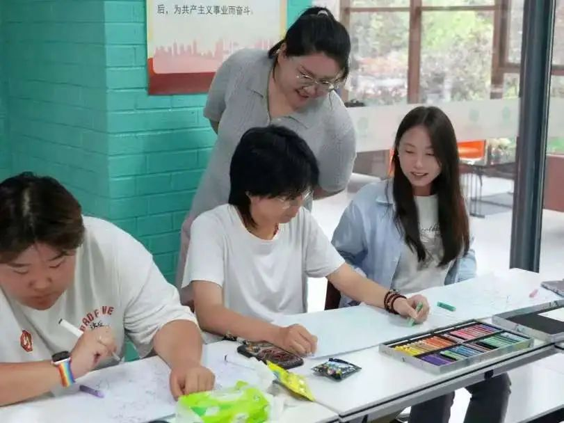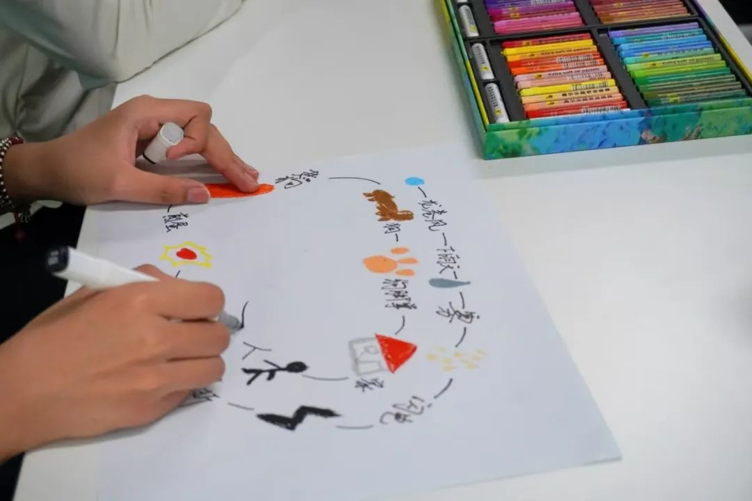 用线条和色彩释放情绪,交换画纸后二次创作。不压抑焦虑,而是感受它自然流走,学会与情绪共处。