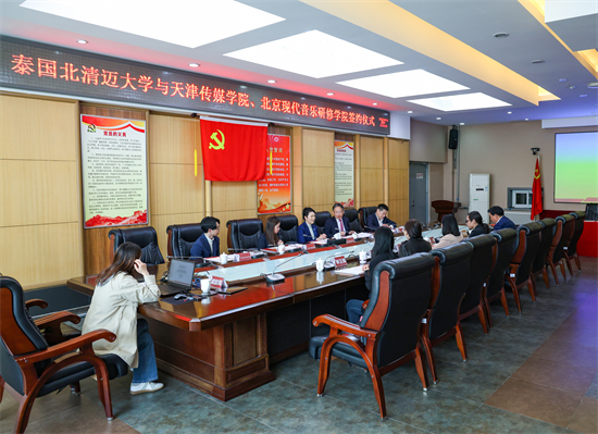 4月14日下午,天津传媒学院与泰国北清迈大学会谈暨签约仪式在学校会议室举行。