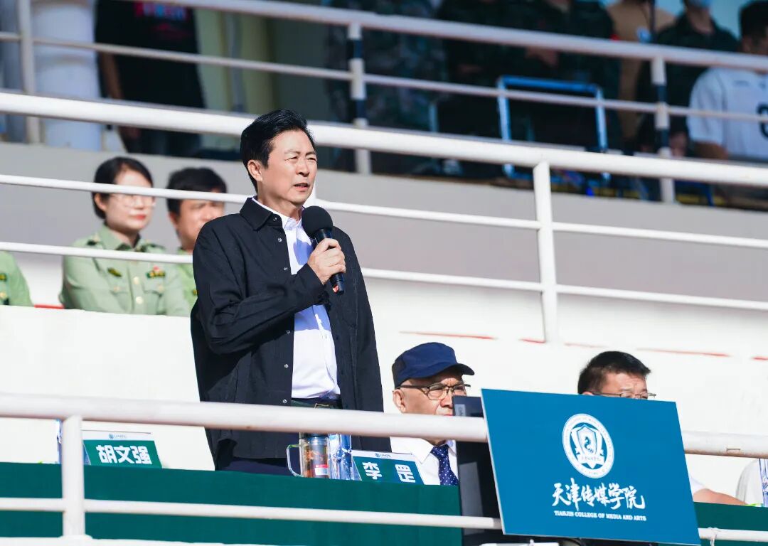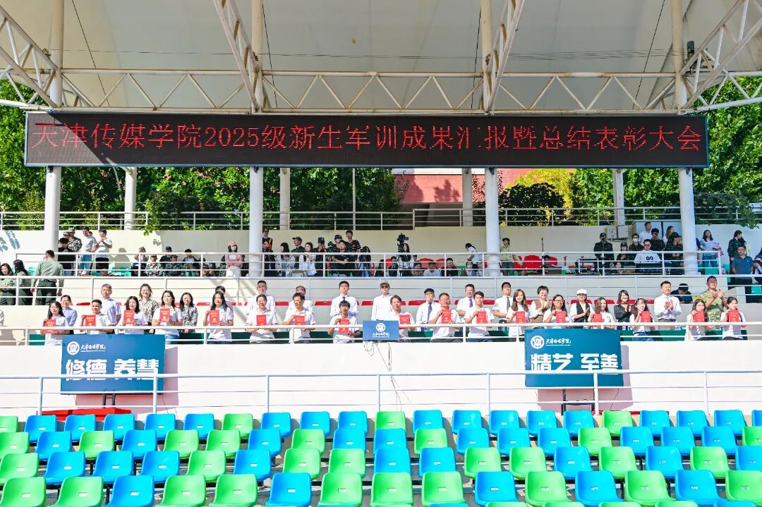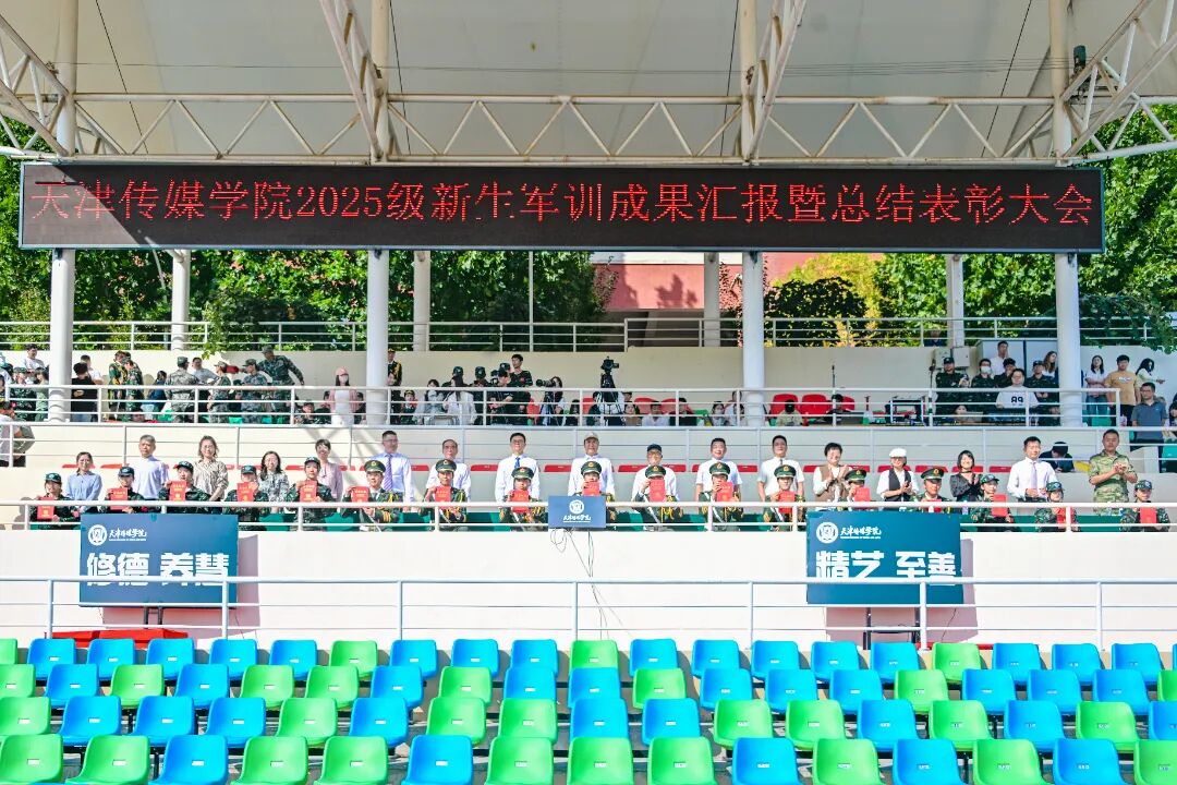 值此中国人民抗日战争暨世界反法西斯战争胜利80周年之际,9月29日,天津传媒学院2025级新生军训成果汇报暨总结表彰大会在奥林匹克体育场举行。校长李罡,执行校长李晓华,党委书记胡文强,党委副书记王群,副校长尹庆民、马斌、李润坤、王月芹,纪委书记胡艳超,以及各二级学院院长出席大会。