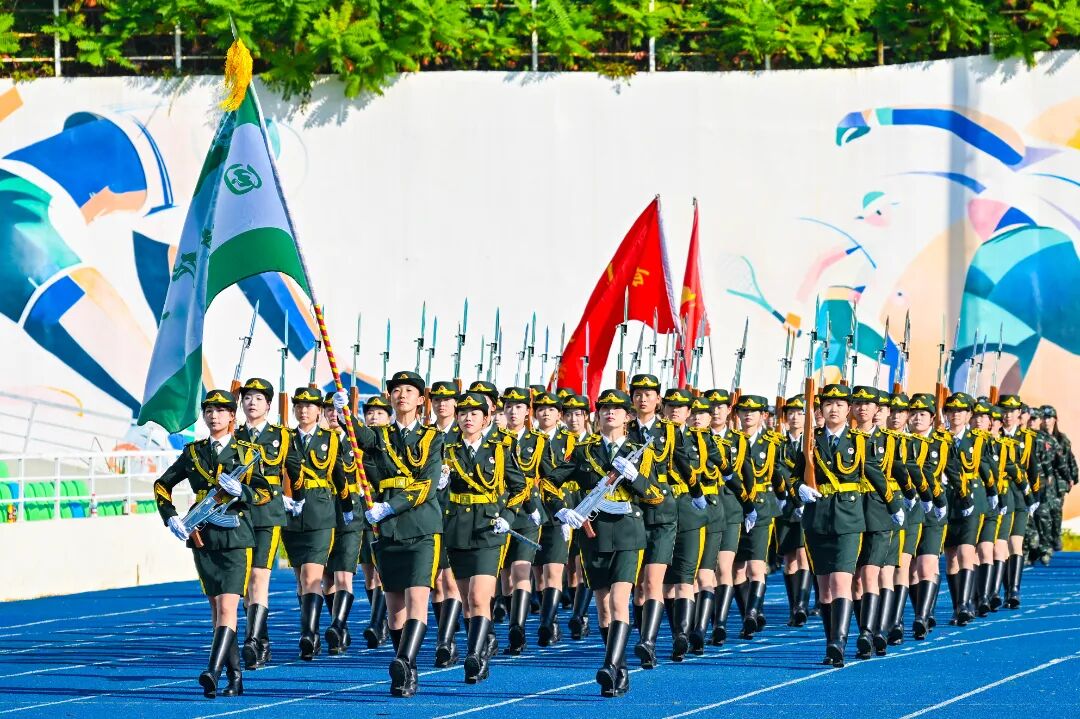 军事科目汇报各有特色,精彩纷呈。同学们以青春为笔、以坚毅为墨,用最饱满的状态、最赤诚的行动,将对历史的铭记、对先辈的追思融入每一个表演细节,为中国人民抗日战争暨世界反法西斯战争胜利80周年献上属于新时代青年的致敬。