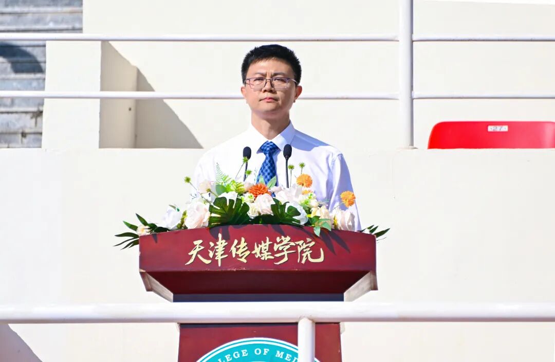 执行校长李晓华宣读《天津传媒学院关于2025级新生军事训练先进个人、先进集体的表彰决定》