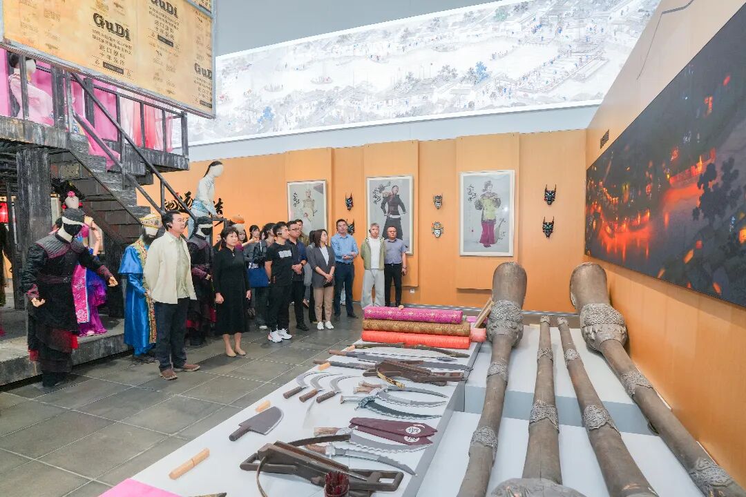 领导嘉宾共同参观动画与数字媒体学院展示区域论坛同期,天津传媒学院动画与数字媒体学院还设置了“中心装置区、回形展柜区、文创展台区”三大展示区域,集中呈现师生原创动画短片、毕设精品、传统文化主题手办及衍生品,通过“静态展品+动态影像”结合的方式,直观展现高校在跨媒介实践中的教学成果。