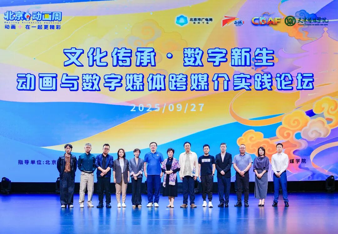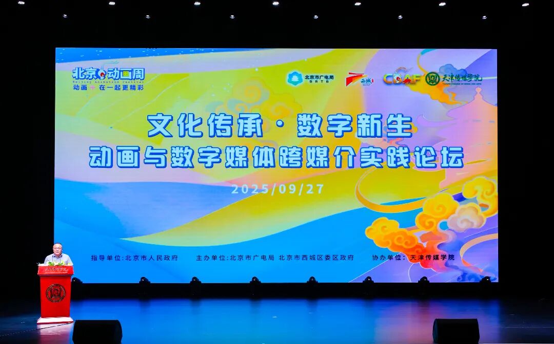 9月27日,2025北京动画周重点分论坛——“文化传承・数字新生:动画与数字媒体跨媒介实践论坛”在天津传媒学院成功举办。本次行业高端论坛由中国动画学会指导,北京广电总局主办,天津传媒学院承办。中国动画学会会长马黎,中国动画学会秘书长王坚,玄机科技股份有限公司高级合伙人茅中元,万维猫动画联合创始人王诤,央视动漫集团市场战略发展总监郭晓芳、央视动漫集团教育事业部校企合作负责人谢硕;天津传媒学院校长李罡,校长助理、产业学院常务副院长李维嘉,动画与数字媒体学院院长王璞,动画与数字媒体学院党总支书记、副院长主利涛,系主任、产业中心主任孙语蔓,系主任刘伦等领导嘉宾出席论坛,共探“传统文化数字化传承”新路径。