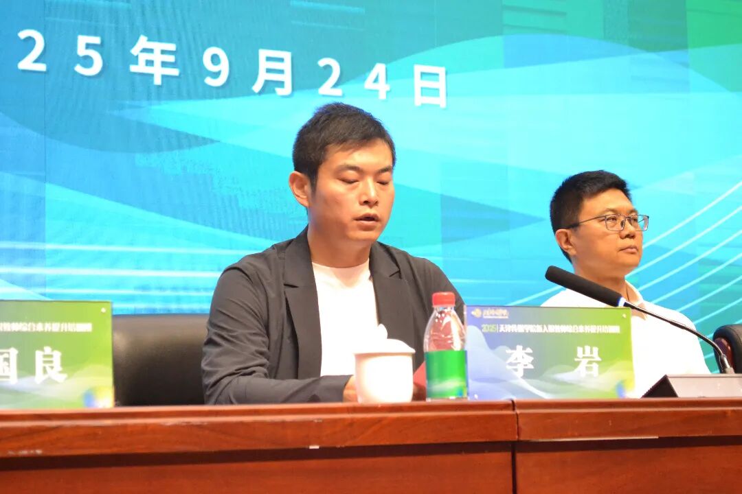 天津传媒学院人事处处长李岩发言,对新入职教师提出培训期间的具体要求,为培训顺利开展筑牢保障。他从三个方面明确纪律:一是 “以纪律守住底线”,二是 “以热情投入学习”,希望新教师珍惜此次培训机会,主动思考、深入钻研,将培训所学转化为解决教学实际问题的能力,为今后站上讲台打下坚实基础;三是 “以责任守护安全”,要严格遵守安全管理制度与交通规则,注意饮食卫生、妥善保管个人财物,爱护公共设施,共同营造安全有序的培训环境。