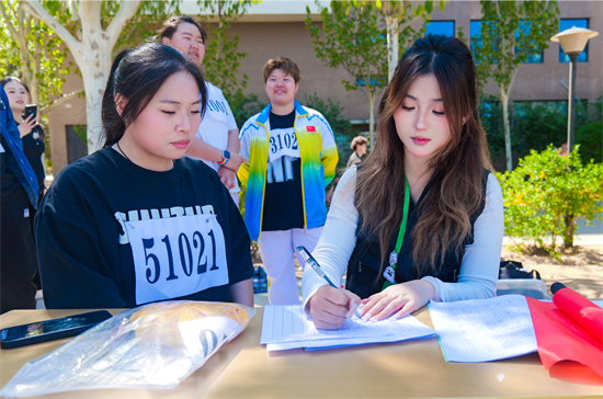 舞蹈学院陈悦(记圈员):最令我惊喜的是,在校园里潜藏着很多运动方面的人才。他们挥洒汗水、全力冲刺的模样令人赞叹。而我作为赛事工作人员,主要负责赛中各项事务的协调与配合,每一个环节都严谨,守护竞技场上最纯粹的公平正义。