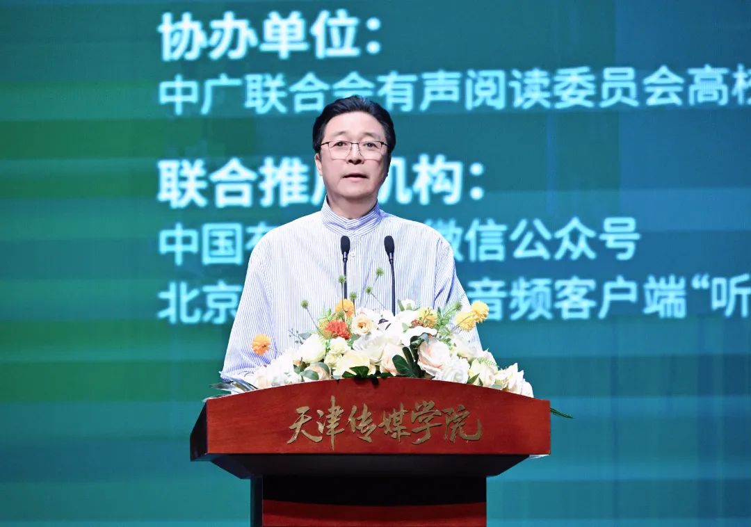 北京现代艺术传媒教育集团董事长、天津传媒学院校长李罡,在致辞中对本届展演活动的举办表示热烈祝贺。他指出,青年学子是有声阅读的核心受众与推动力量,通过参与有声阅读创作与传播,既能提升语言表达、文学素养等综合素质,更能促进文化传承创新。作为主办方,天津传媒学院将携手全国高校,推动大学生有声阅读活动向制度化、品牌化、专业化迈进,为传播时代强音、讲好中国故事贡献青春力量。