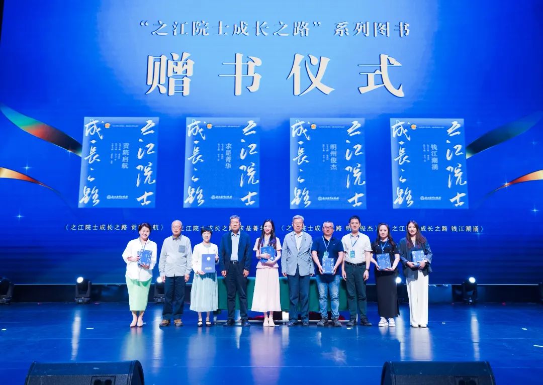 活动现场还举行了《之江院士成长之路》新书发布仪式。该书由徐善衍主编,聚焦立德树人的根本任务,讲述了百余位院士躬身报国的成长故事。阎晓宏、徐善衍、龚剑、司马一民、蒋婷等嘉宾共同为新书揭幕。随后,天津传媒学院、浙江传媒学院、吉林艺术学院、四川传媒学院、内蒙古艺术学院等学校代表接受赠书。