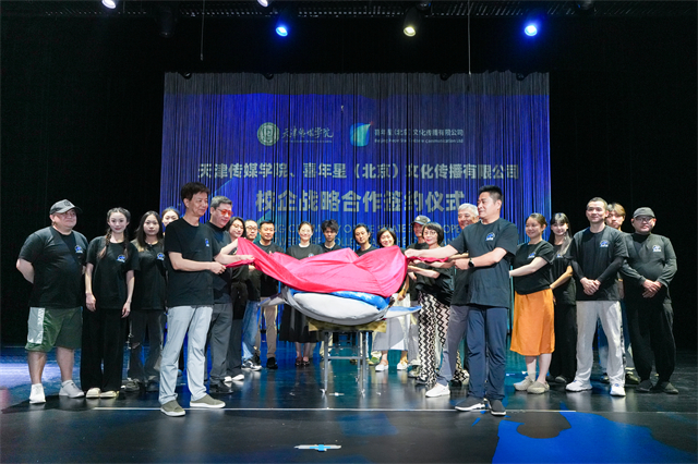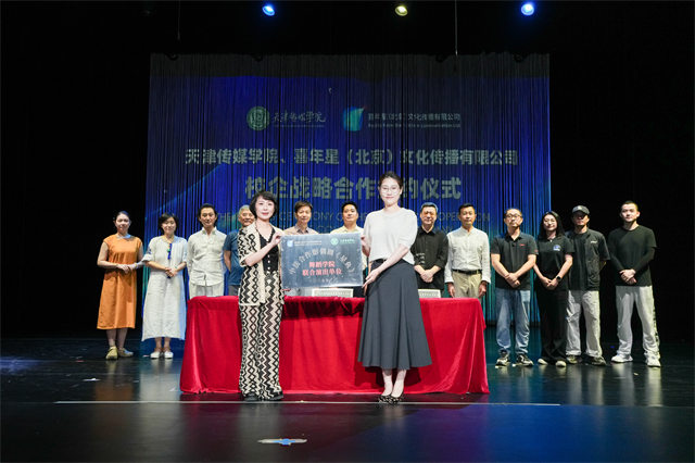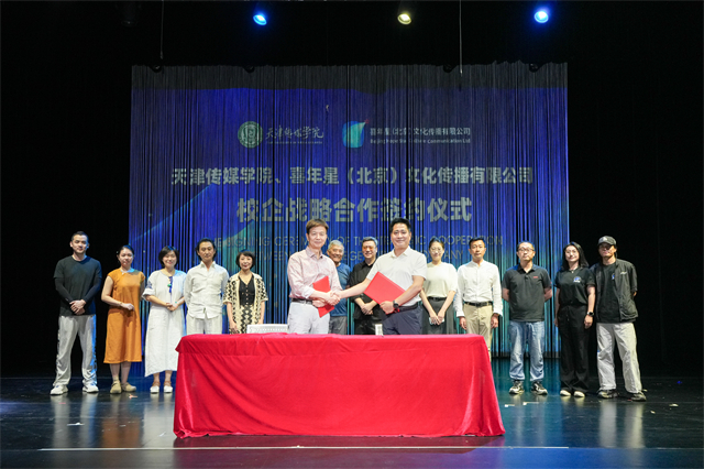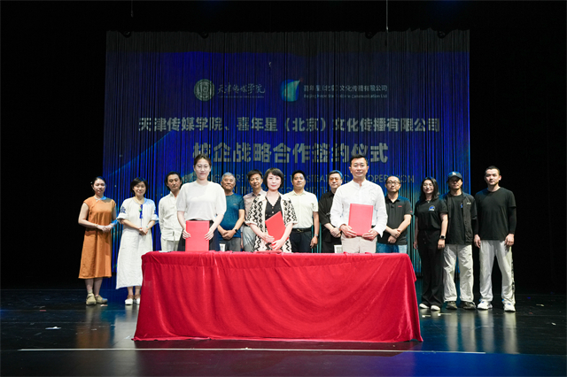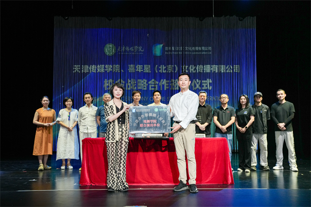 在双方代表共同见证下,天津传媒学院与喜年星(北京)文化传播有限公司签署多项合作协议,并互授牌匾,标志着双方在人才培养、艺术创作、产业融合等领域的深度合作迈出实质性一步。