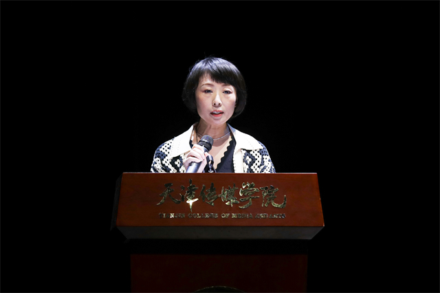 喜年星(北京)文化传播有限公司艺术总监、影偶剧《星鱼》的制作人韩迟详细介绍了《星鱼》排练情况及未来巡演安排,感谢天津传媒学院为剧组提供的排练环境和全方位保障。她表示,此次《星鱼》复排是校企合作一次积极的实践与探索,双方将携手开展更多领域合作,共同探索艺术人才培养新路径,推动中国当代影偶艺术繁荣发展。